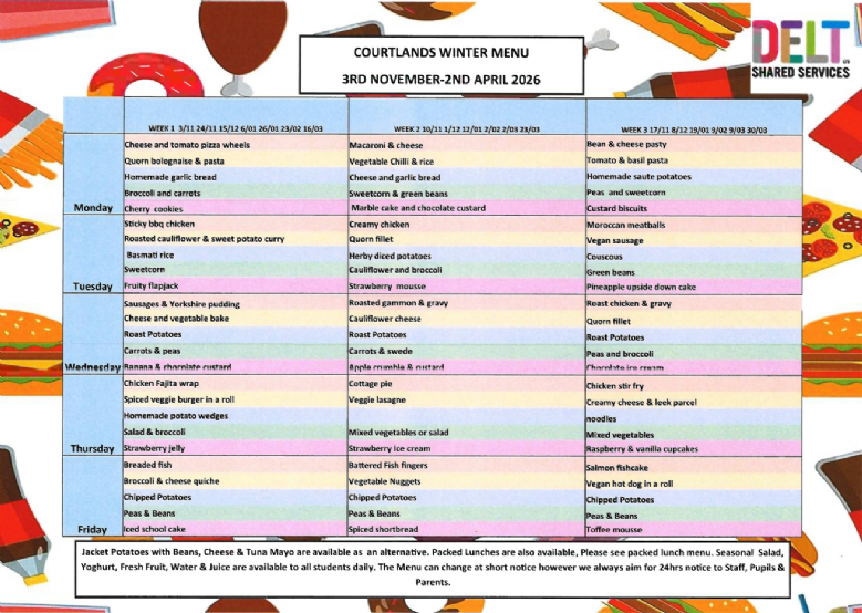 Our kitchen and ever improving menu provides an easy choice for every pupil/staff member to make a healthy and tasty meal choice as part of a balanced diet and active lifestyle.